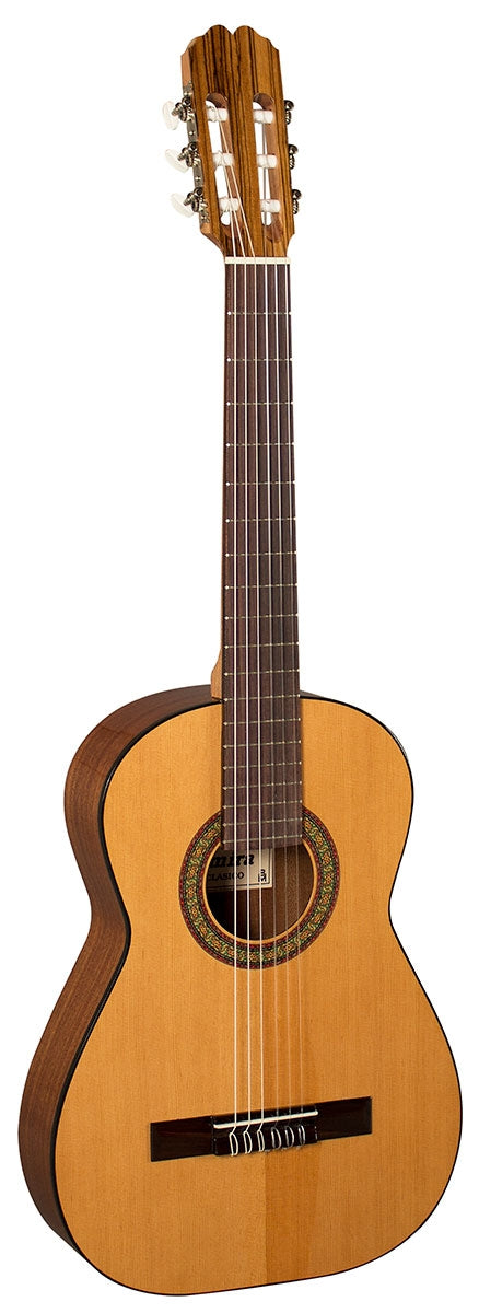 1949 - Clasico - The Clasico is an incredibly useful option for students. Featuring a smaller body but with a full sized neck, the younger or smaller student can learn correct fingering scale but with the added comfort of a slightly smaller body. - 7/8 Size - Top: Spruce - Back & Sides: Sapelli - Neck: African Mahogany - Fingerboard: Mongoy - Machineheads: Lyre design Nickel
