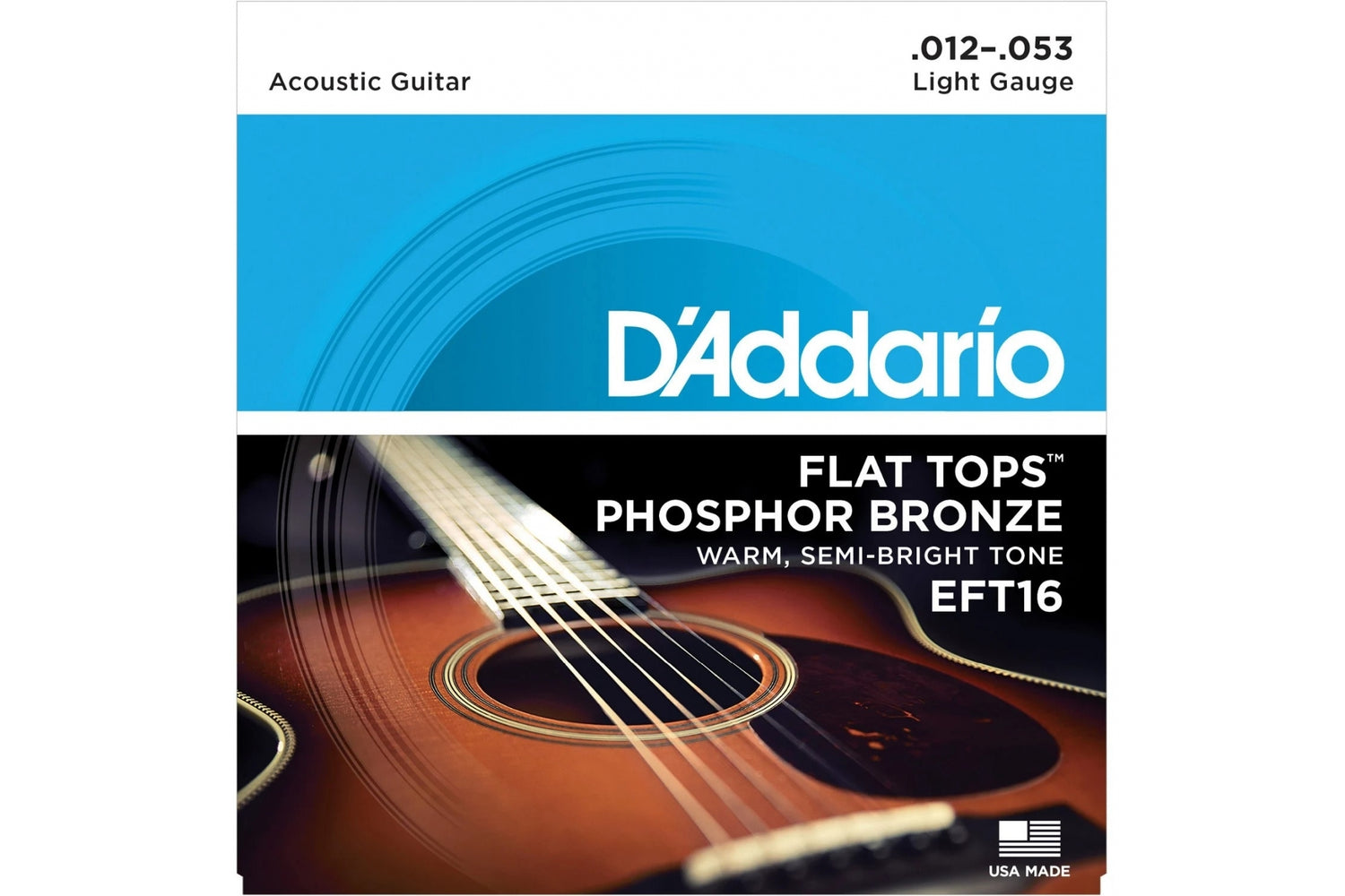 As a half round phosphor bronze acoustic guitar set, Flat Tops are designed to significantly reduce unwanted finger noise. Combining tried-and-true phosphor bronze tone with a smoother feel and quieter playing experience, they’re excellent for recording—and slide guitar playing. Flat Tops are made with a high carbon steel core and phosphor bronze wrap wire, which is then precision ground and polished, leaving behind a semi-flat string with a smooth feel and beautifully balanced tone. 12-53 Light gauge strings are our most popular acoustic gauge, providing a nice balance of playability and tone.