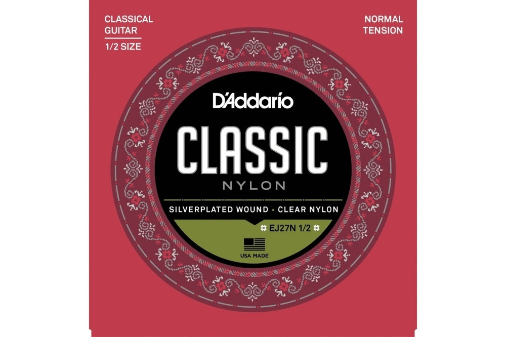 D'Addario's EJ27 1/2 is a string set for a 1/2-size classical guitar. The set consists of three nylon strings and three silver-plated copper wound nylon strings for a long-lasting warm sound. This is an ideal string set for beginners and students.