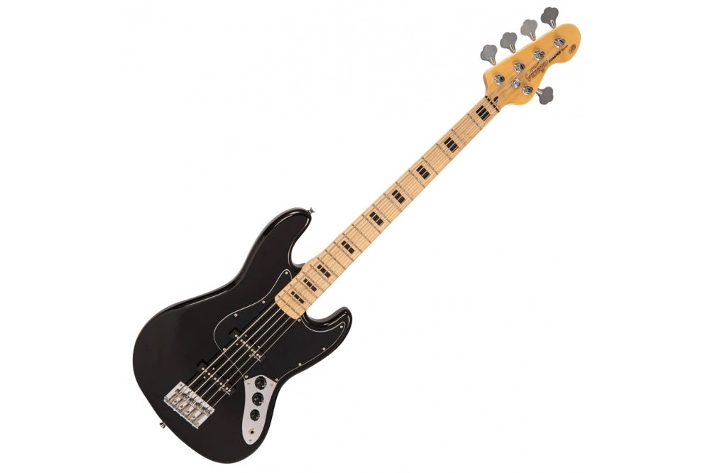 With a stunning finish, 3-ply scratchplate, chrome hardware and black control knobs, the Vintage Coaster Series double cutaway V495 5 string electric bass guitar is a fine example.