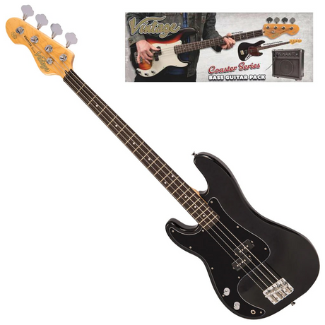 Vintage V495 Bass Boulevard Black Guitar Pack