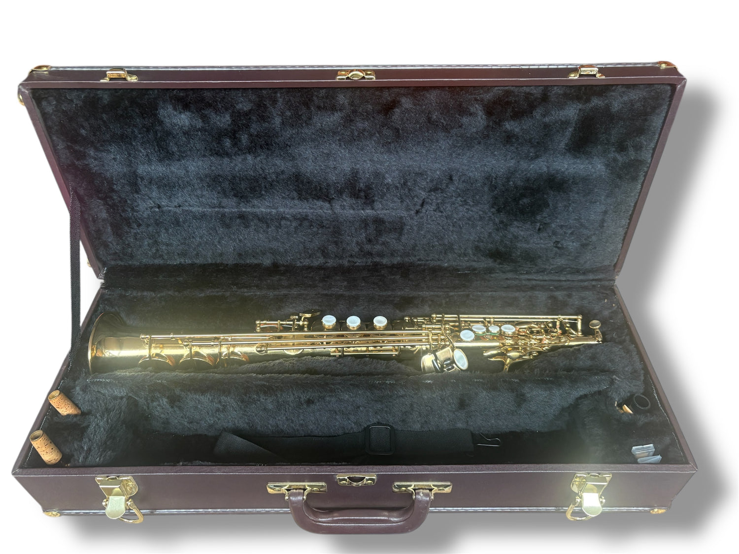 This is a beautifully maintained Arbiter Pro Sound soprano saxophone, made in Taiwan. These Taiwanese models are renowned for their solid build quality and reliable performance—far superior to the lower-quality Chinese versions.