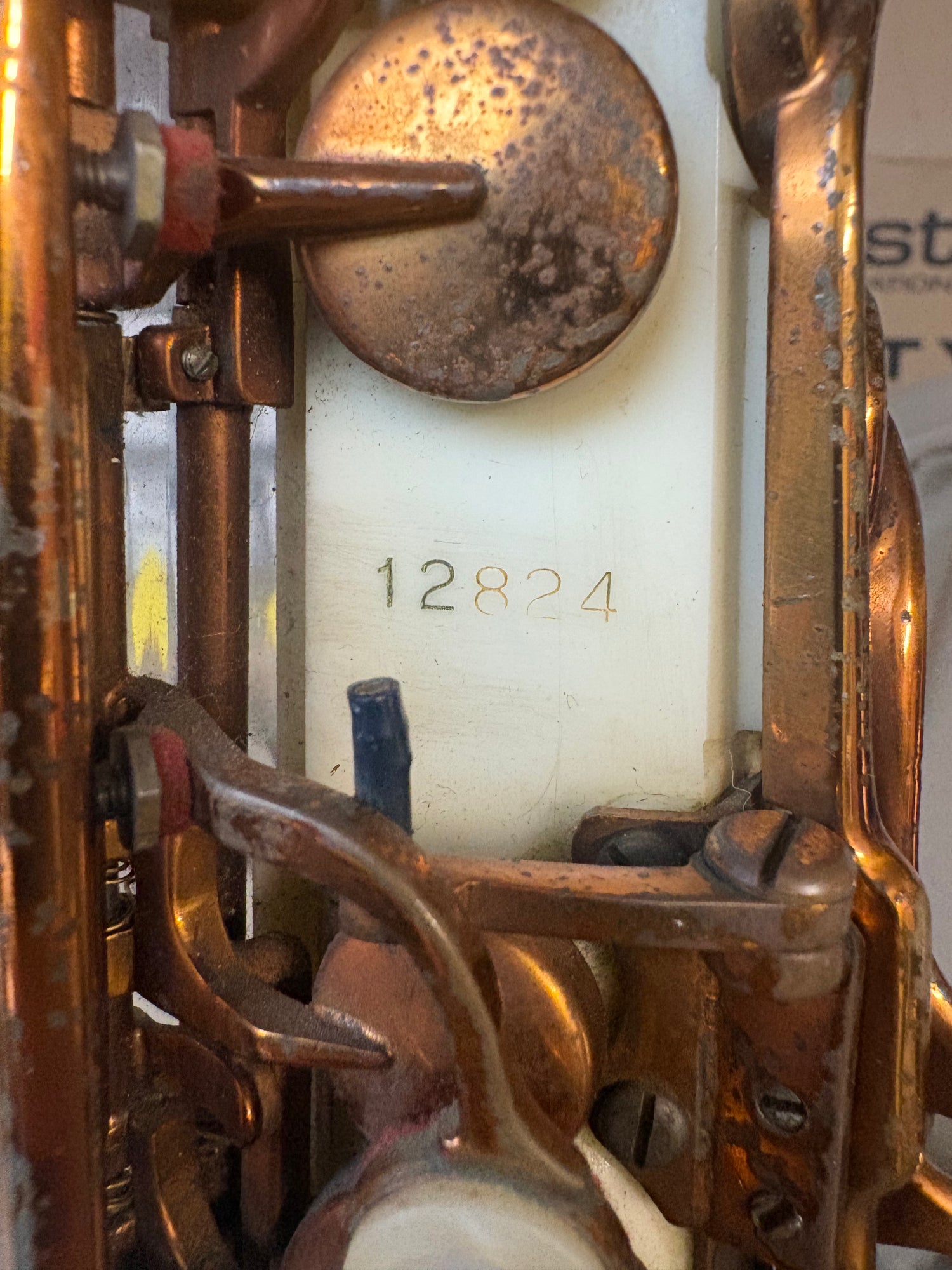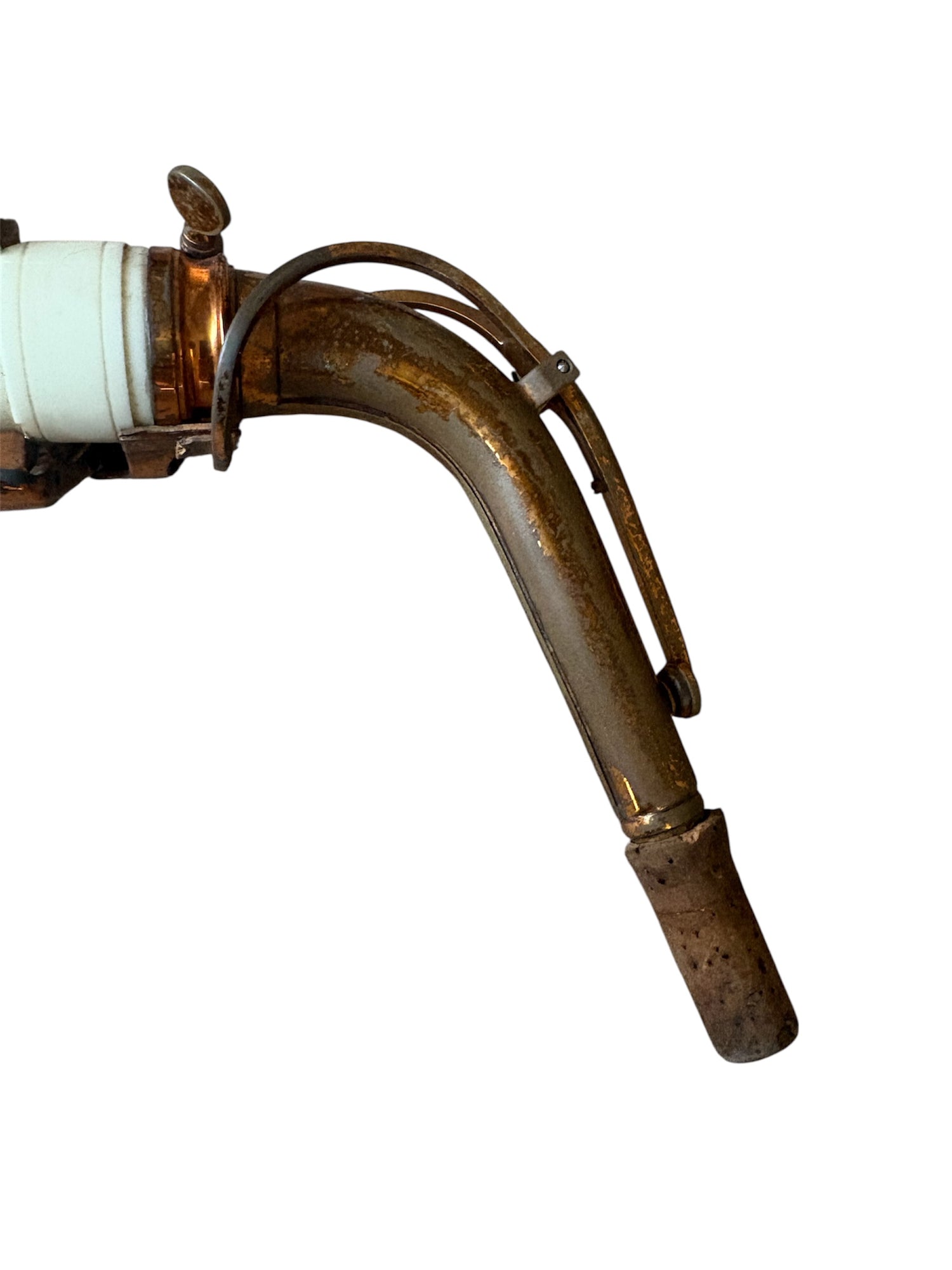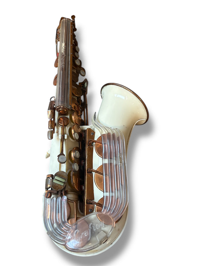 Classic and rare Grafton Saxophone. Has a crack, see photo/video, and would benefit from further work. All 3 transparent guards are unbroken with no cracks.