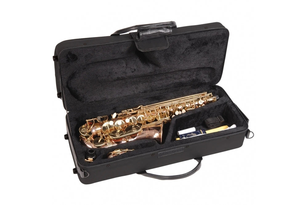 This instrument has been designed with affordability, durability and comfort in mind. The body is fully brace d for strength helping it stand up to the demands of regular play and transport to and from lessons. The adjustable thumb rest, bell joint, neck and stack adjusting screws can be used to make the set-up more comfortable. The saxophone's Rose brass body is finished with a protective lacquer.