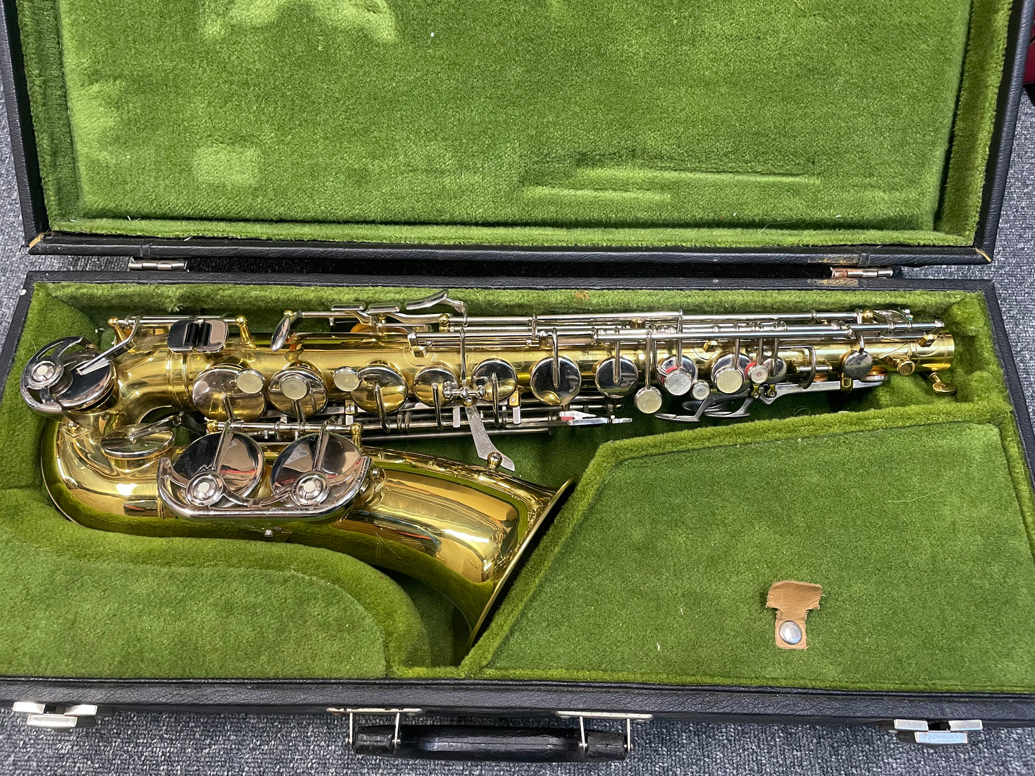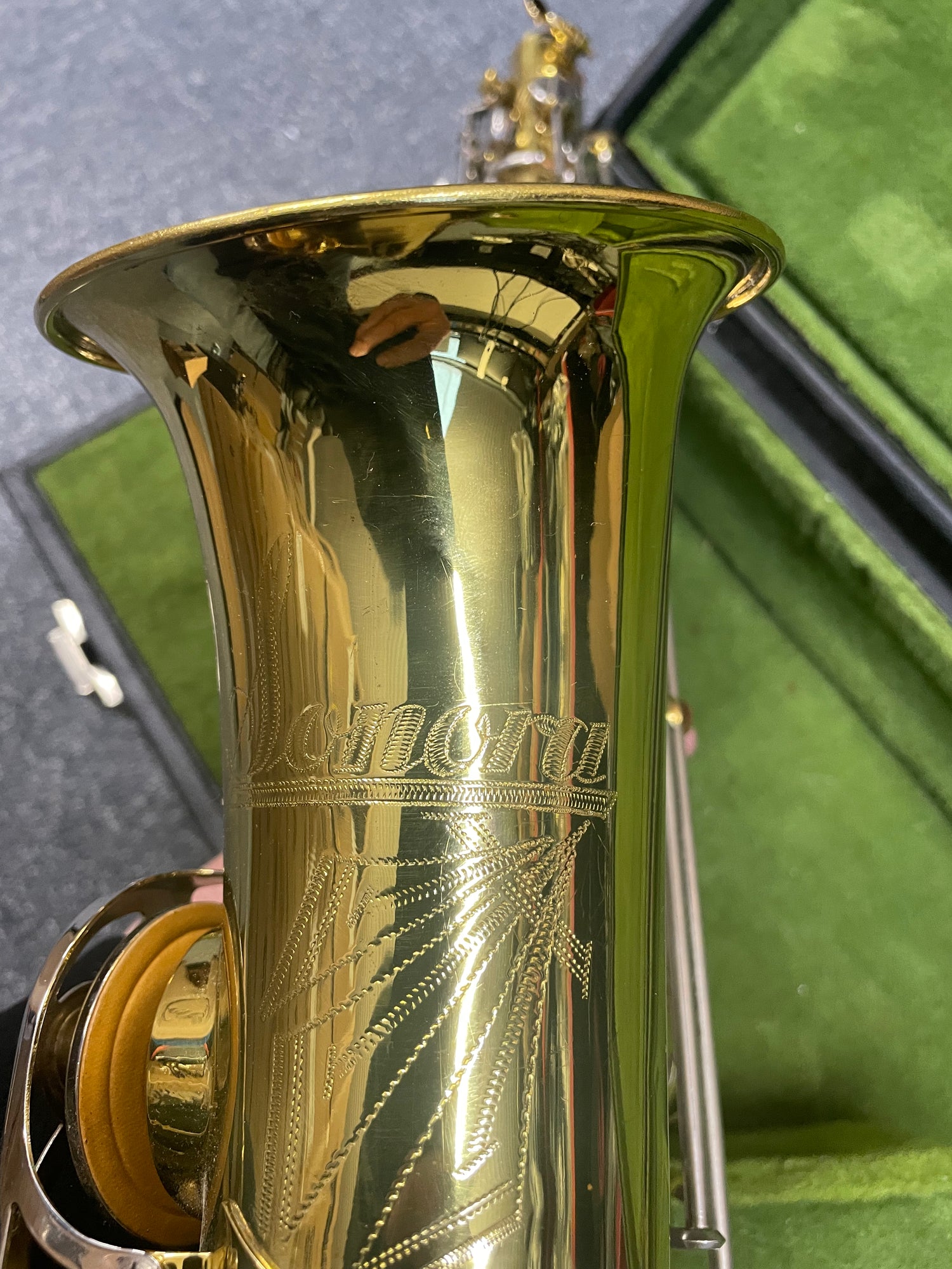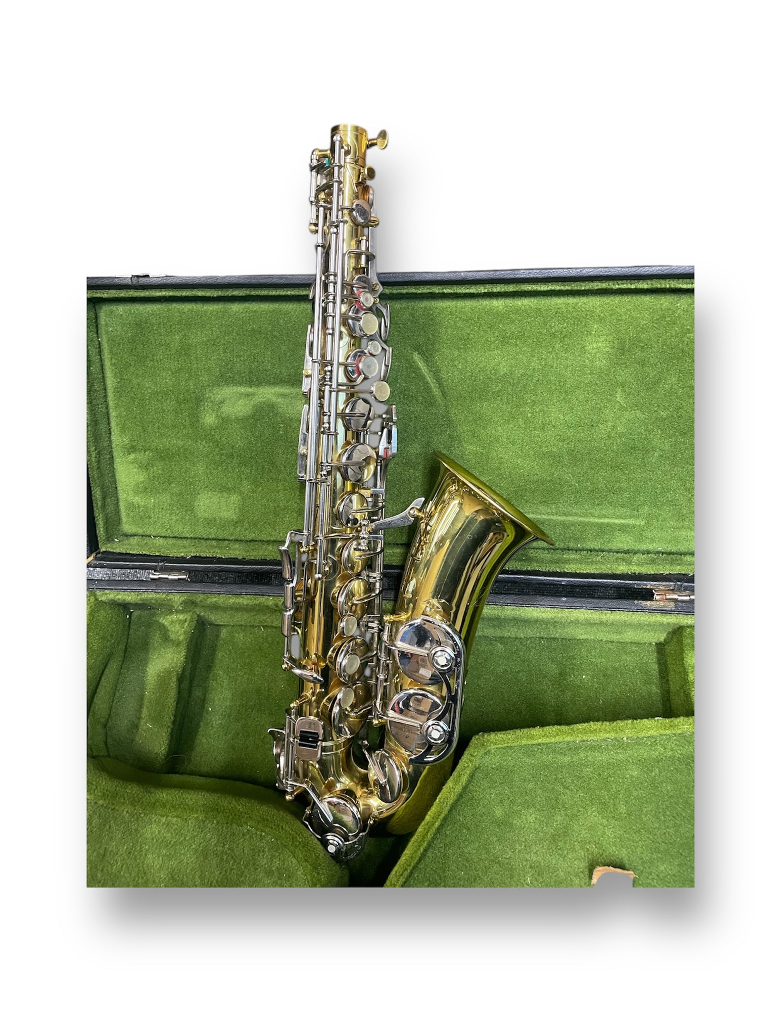 Second hand Alto saxophone. In good condition, pads are in very good condition. No dings or dents just some slight play wear marks.