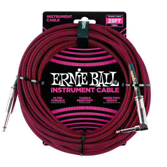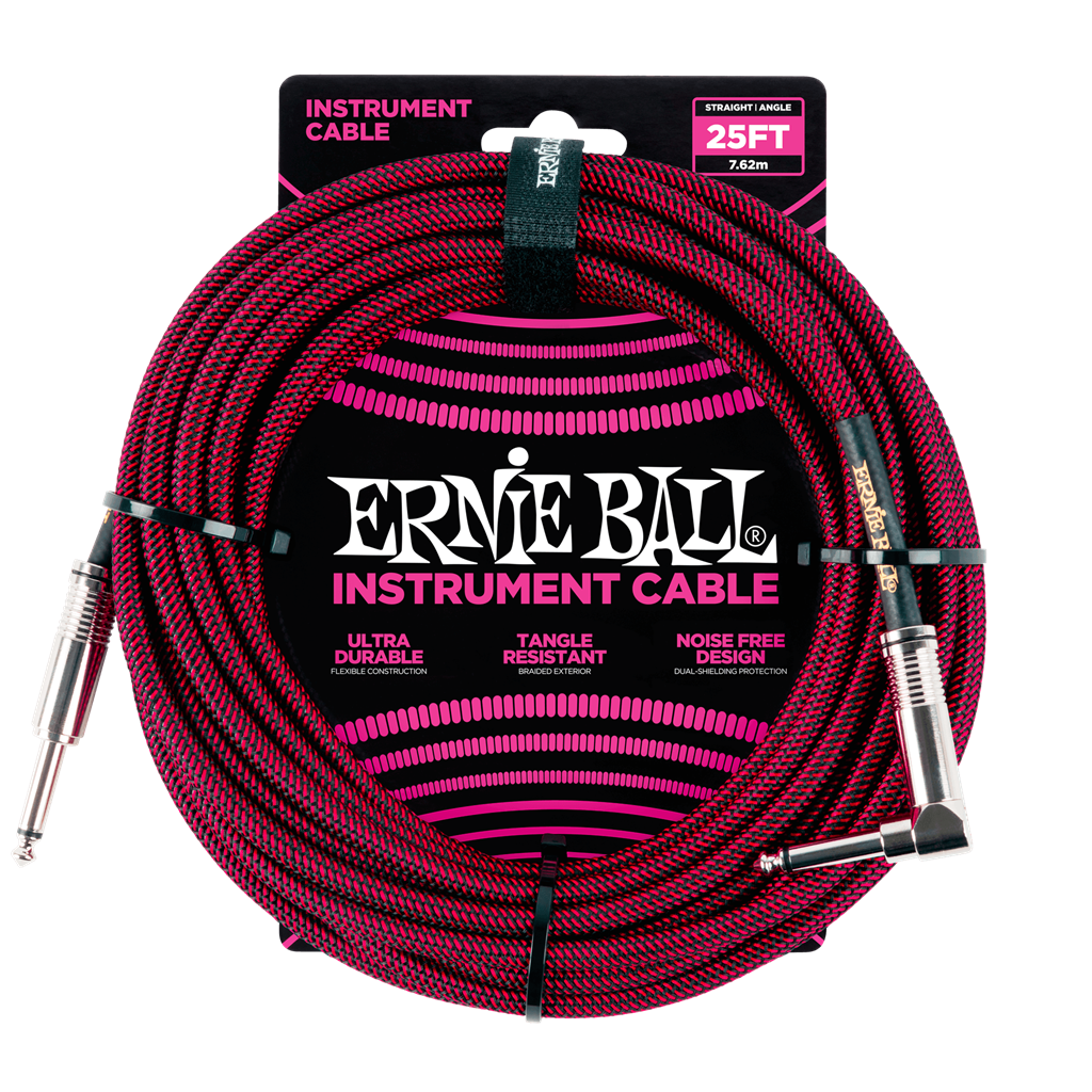 Ernie Ball 25ft Straight - Angled Braided Cable Red
