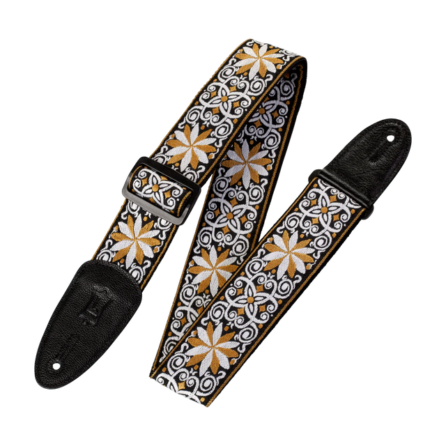 A vibrant and captivating collection of guitar straps that beautifully combines the timeless charm of hootenanny designs with the durability and comfort of jacquard fabric.