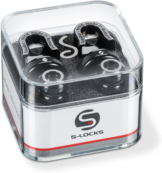 Schaller S-locks feature ingenious design and outstanding quality. For decades Schaller has been the most popular strap lock system for guitar and bass. Now Schaller presents the next generation of revolutionary strap locks - the S-Lock. They feature one-piece hardened steel strap buttons, aesthetic design, perfect handling and an elegant Lock-Wheel. S-Locks are silent for noiseless performance while moving and playing your instrument. S-Locks are also fully compatible with all existing Schaller strap locks.