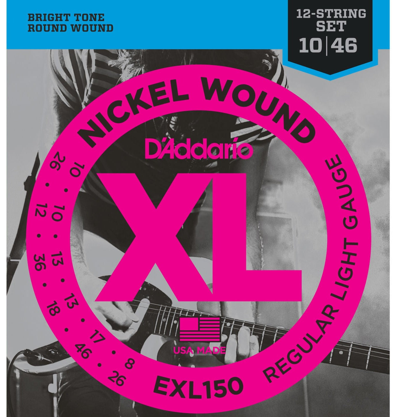 The EXL150 set is the most popular choice for 12-strings guitars, providing the ideal balance of comfortable feel and bright, jangly tone.