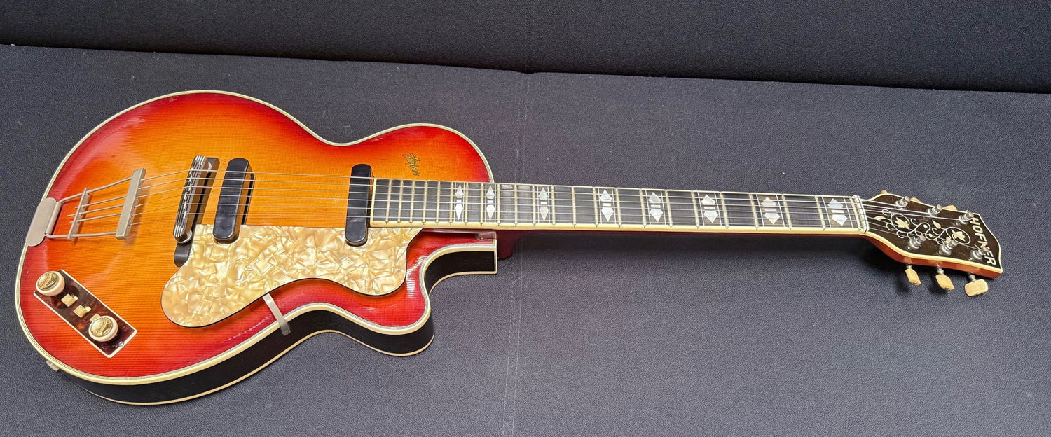 Pickups: Two Hofner single-coil “super response” pickups in black bakelite cases,