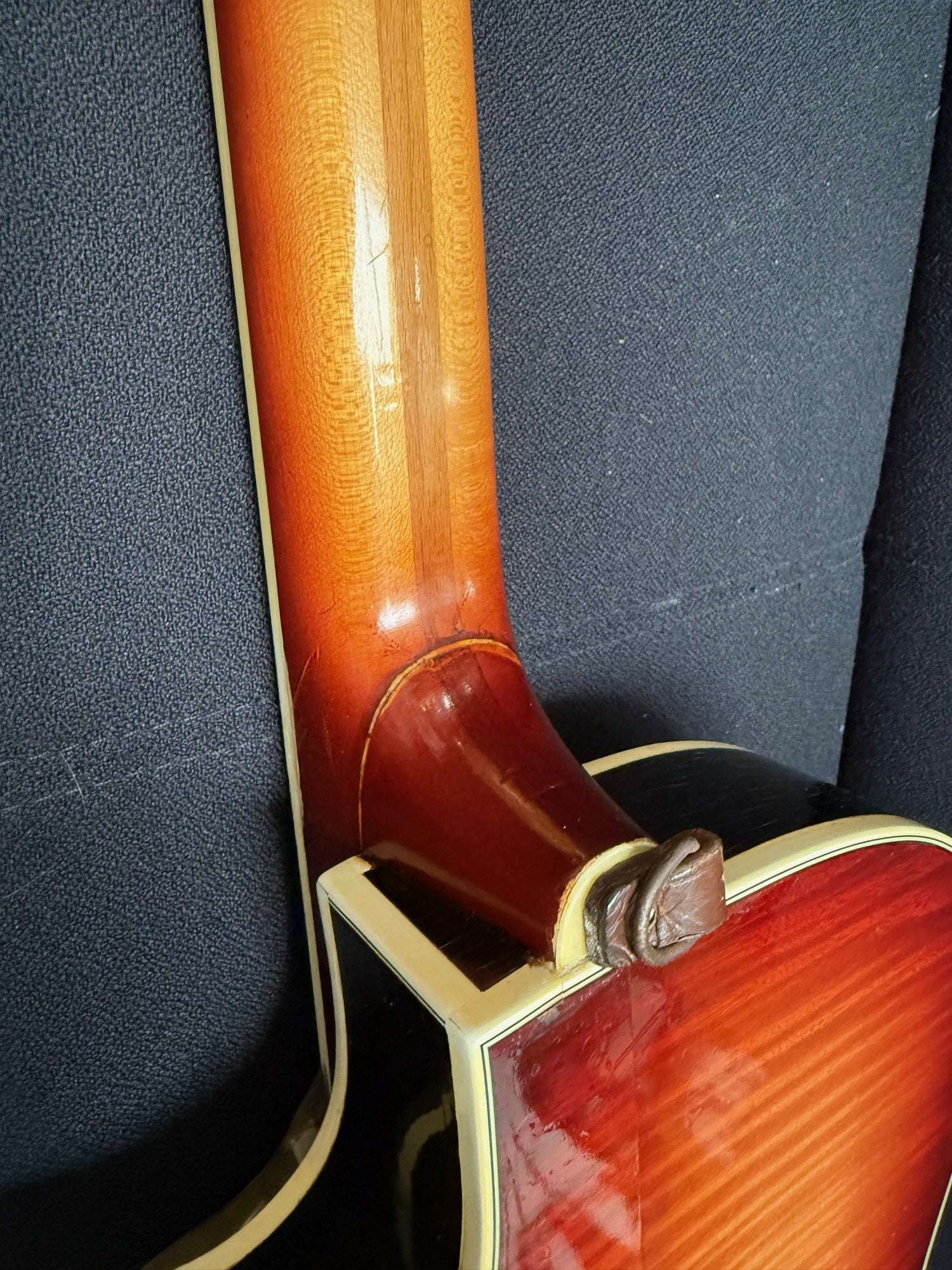 Some light dents in the body , some checkerboard aging of the finish and the neck heel has been professonally reset. Some issues with the ryhthm/lead switch, otherwise all working fine