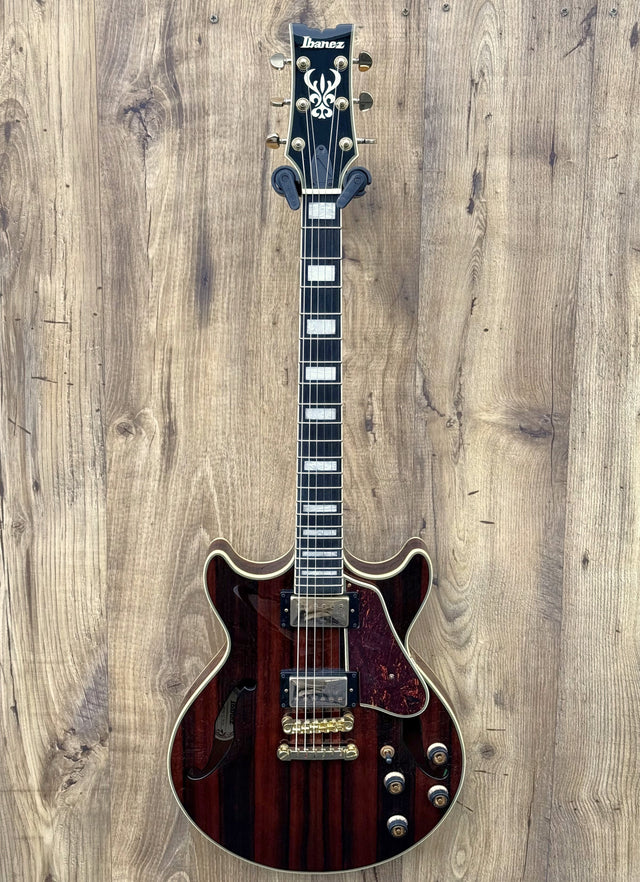The Ibanez AM93ME-NT is a standout in the Artcore Expressionist line, designed for guitarists who want the rich warmth of a semi-hollow but in a more compact, comfortable body size. With its natural finish and elegant detailing, it’s as much a visual statement as it is a tonal one.
