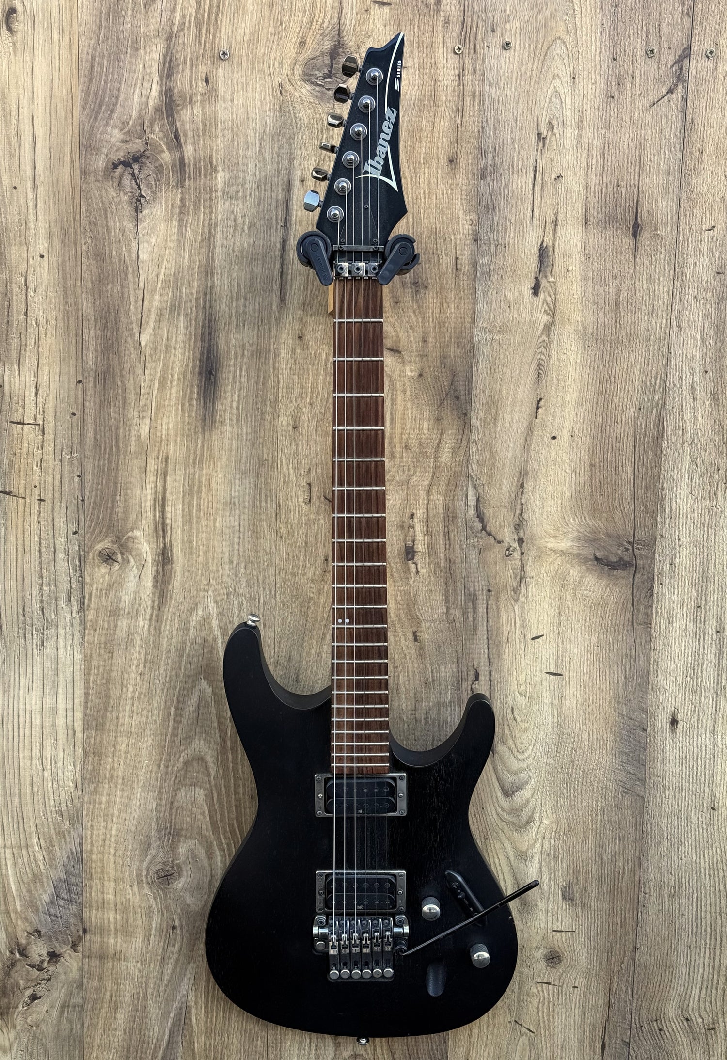 The S320 is part of Ibanez’s S-Series (also known as Saber body style) and was made in the late 2000s. The “Weathered Black (WK)” finish gives it a matte, open-pore look with a worn-in aesthetic.