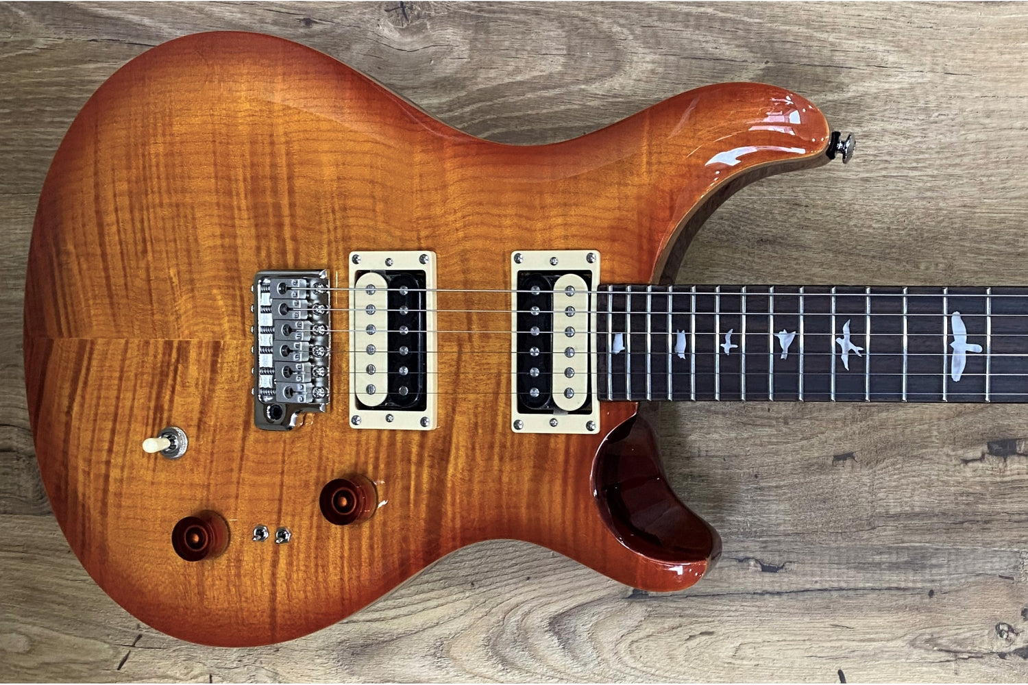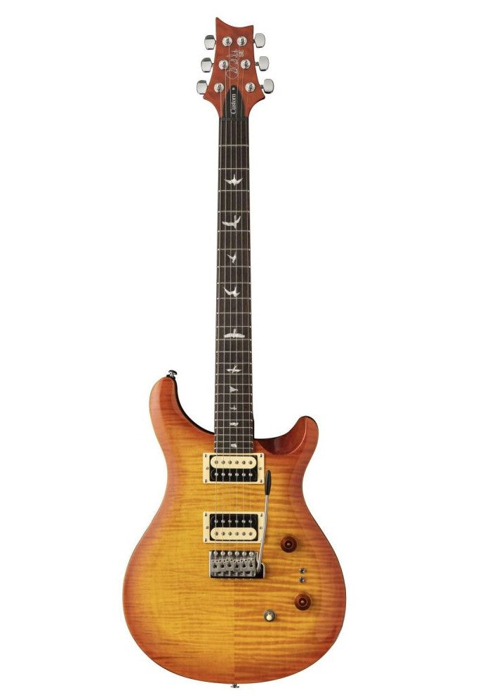 The Custom 24 is the quintessential PRS guitar: the iconic guitar that started it all back in 1985. The Custom 24-08 keeps all the foundational specs of the instrument, while taking the Custom platform to new sonic territories. Like the Core Series instrument, the SE Custom 24-08 features two mini-toggle coil-split switches that individually split the humbuckers into true single coils for a total of eight pickup configurations. Classic design elements include a maple top, mahogany back, rosewood fretboard, 24 frets, 25” scale length, bird inlays, signature headstock logo, and PRS patented molded tremolo.