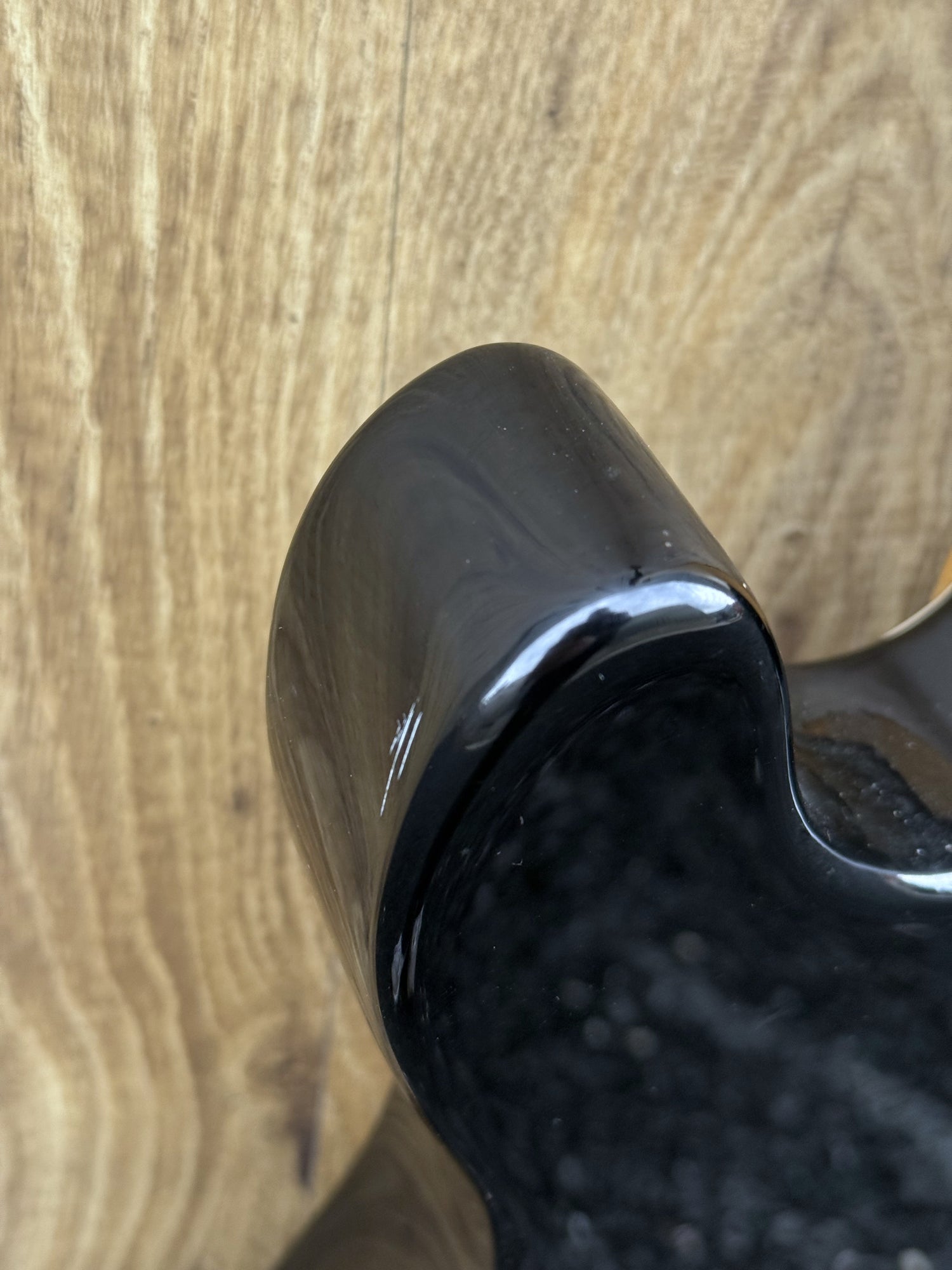 Vintage Styling: The black finish with white binding and large headstock captures classic ‘70s Fender vibe.