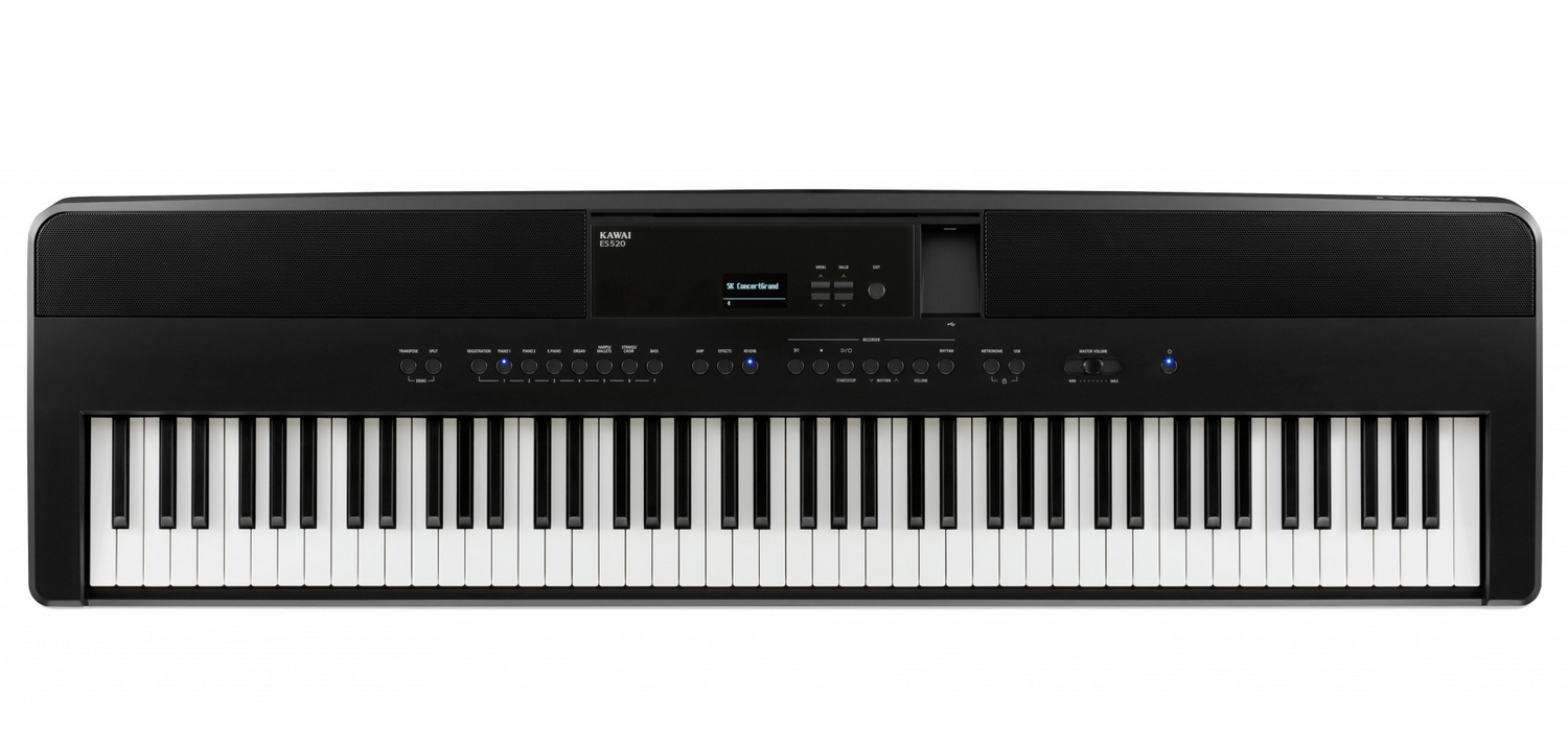 Combining Kawai's authentic Responsive Hammer Compact II keyboard action and Progressive Harmonic Imaging sound technologies, with modern Bluetooth connectivity and a powerful 40W speaker system, the superb ES520 delivers best-in-class touch and tone within a stylish, highly portable package for the home, studio, or stage.