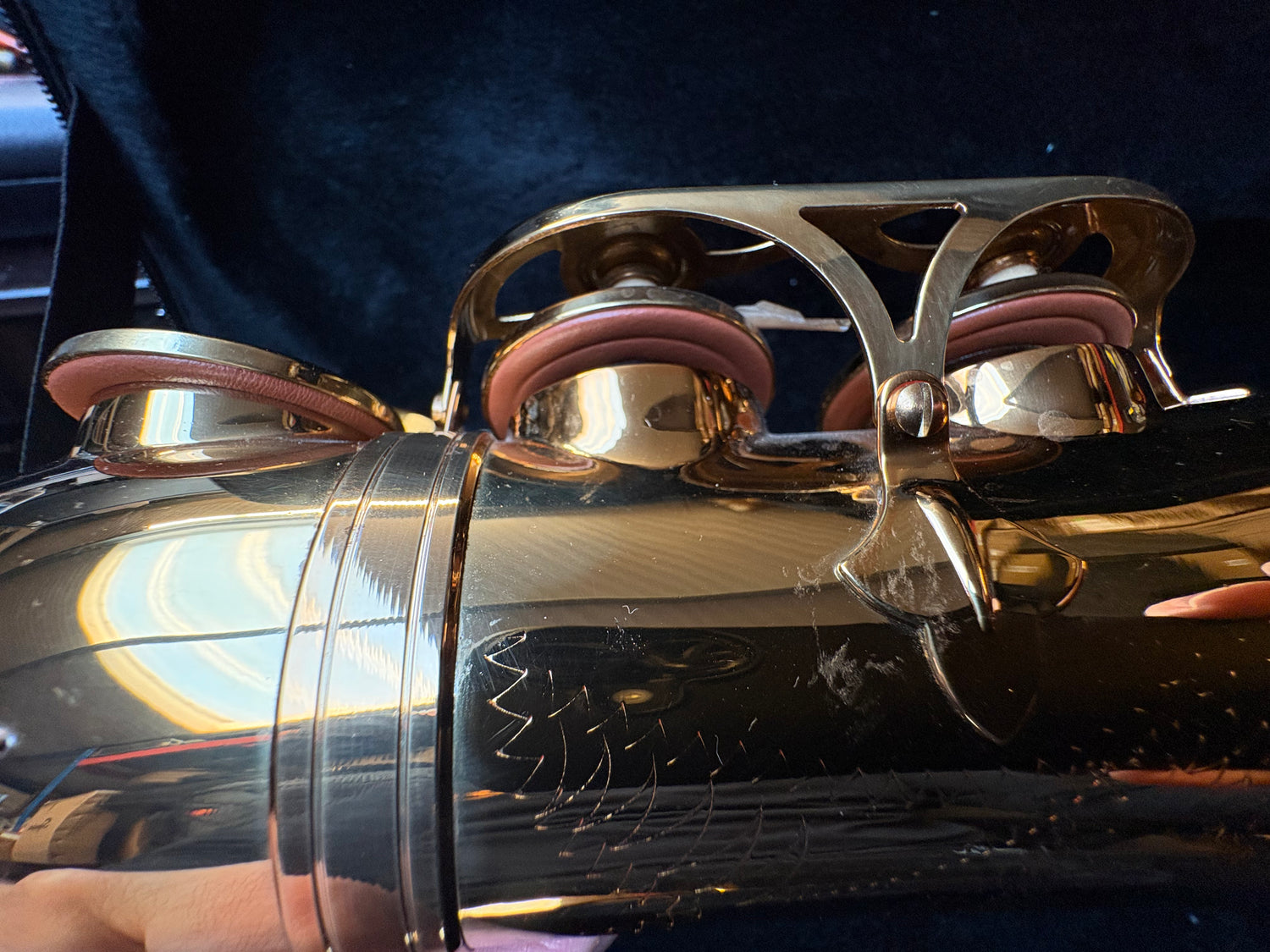 Second hand outfit. The pads are in very good condition. No tarnishing or dings or marks on the body. This sax has barely been used, it plays really well and has had a full checkdown and service.