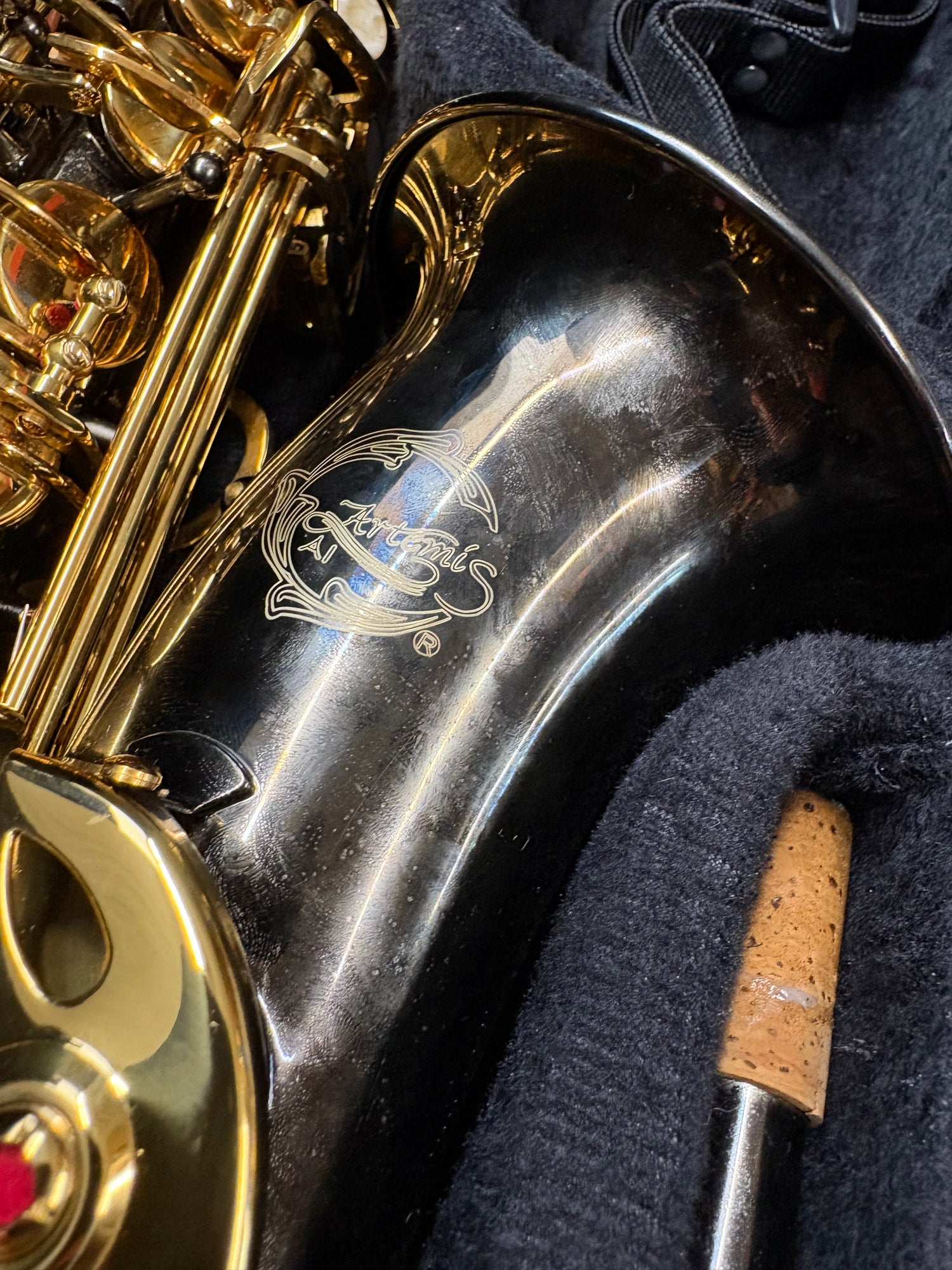 Excellent second-hand Artemis Alto Saxophone outfit. Pads are in very good condition, with no dents or body damage. Only minor cosmetic discolouration to the black finish. Lightly used, plays beautifully, and has been fully checked and serviced.