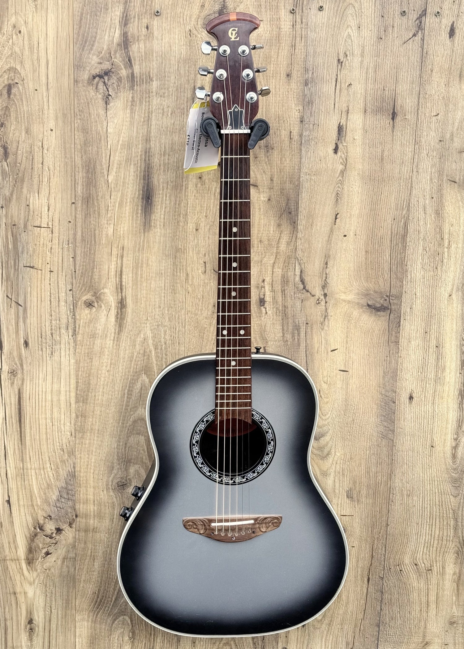 The Clarissa round back guitar offers a vintage electro-acoustic experience with a distinctive bowl-back design, making it a budget-friendly alternative to Ovation-style instruments.