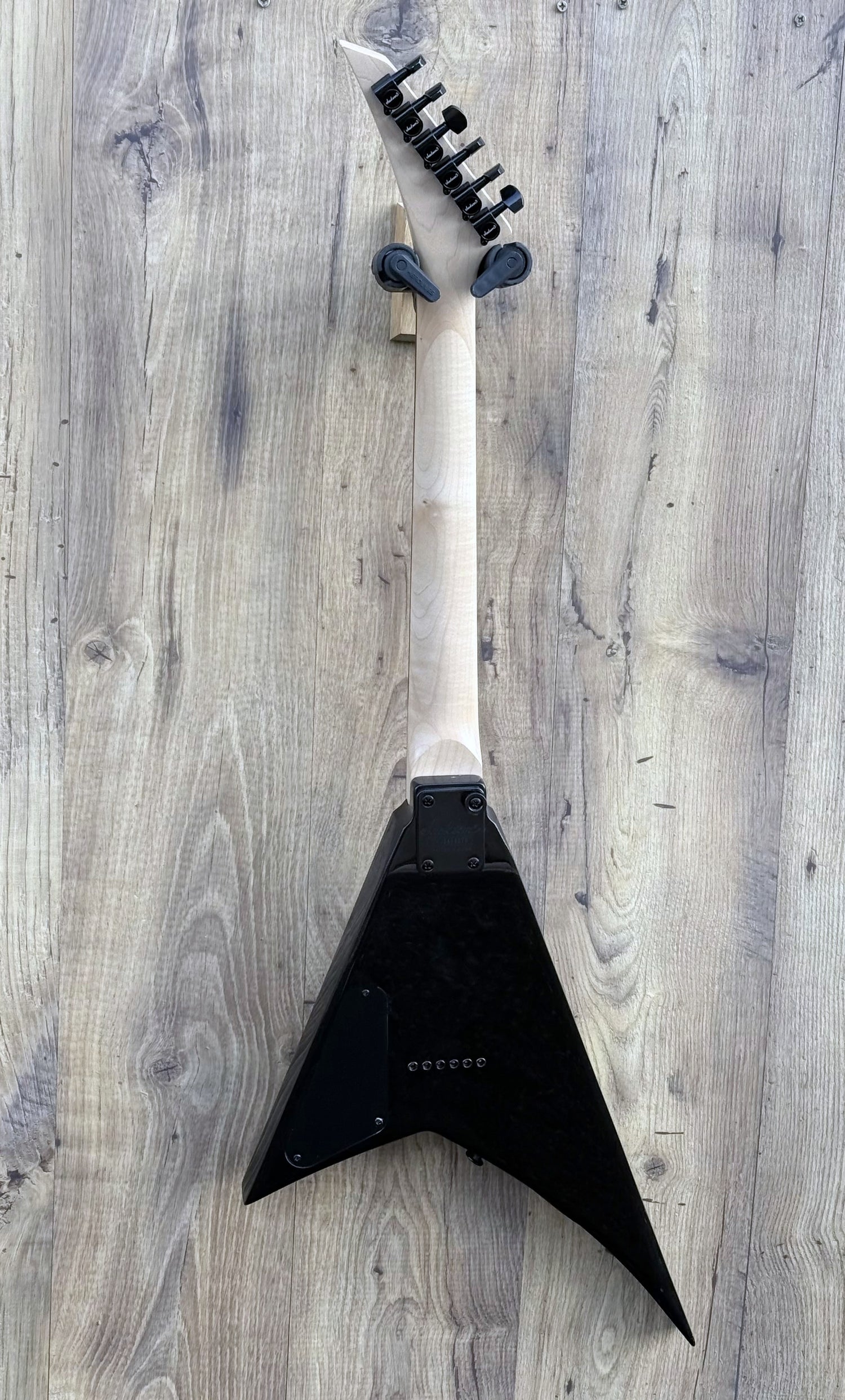 - Maple neck with amaranth fretboard: Smooth, fast, and very Jackson‑like. The neck profile is slim and easy to navigate.