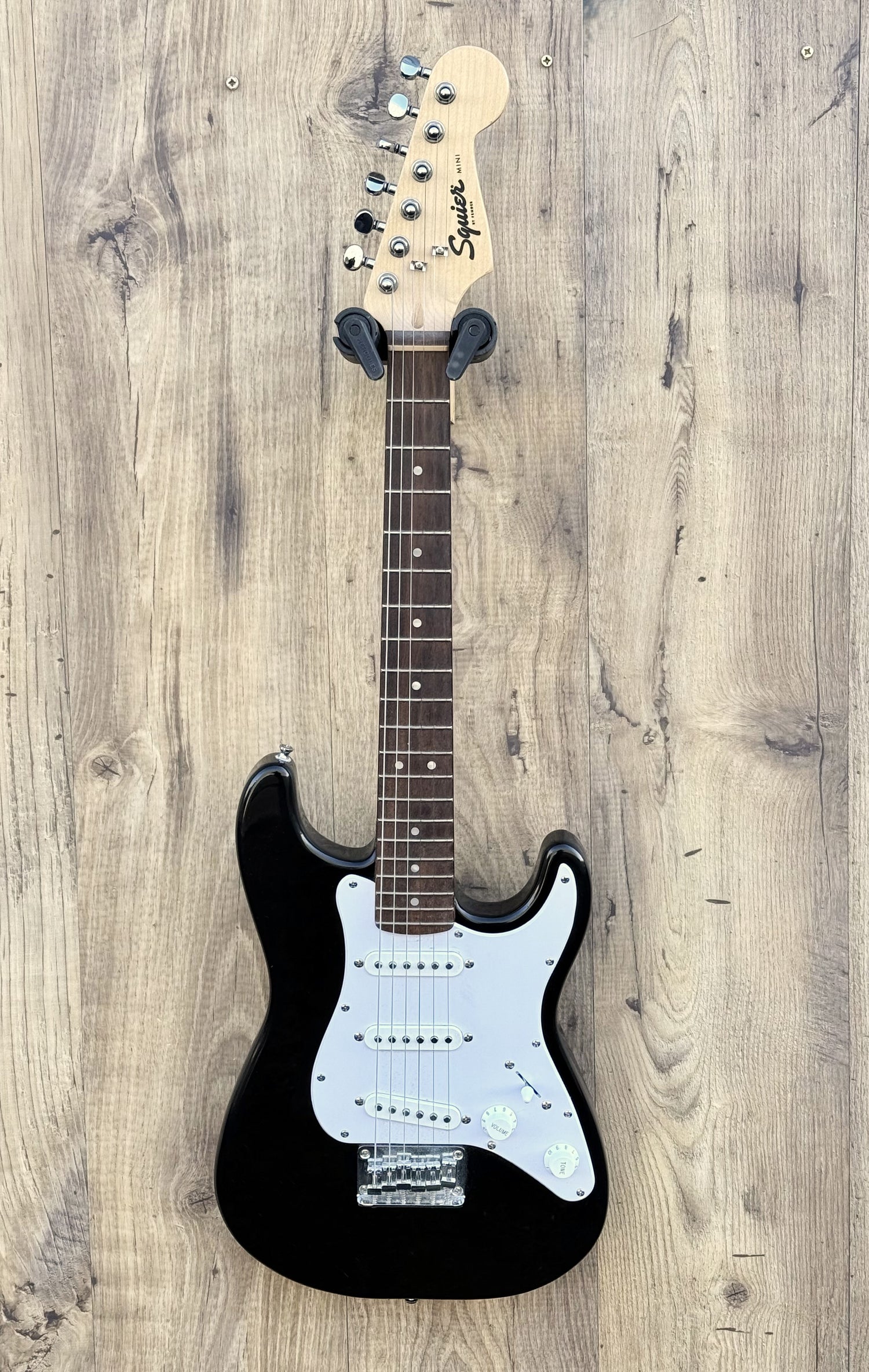 the Squier Mini Stratocaster is the perfect companion for players seeking a reduced-size instrument with classic styling and familiar Fender tone. Highlights include a thin and lightweight body, an easy-to-play C-shaped neck profile, a trio of Squier single-coil pickups with 5-way switching for sonic variety, and a hardtail bridge for solid tuning stability.