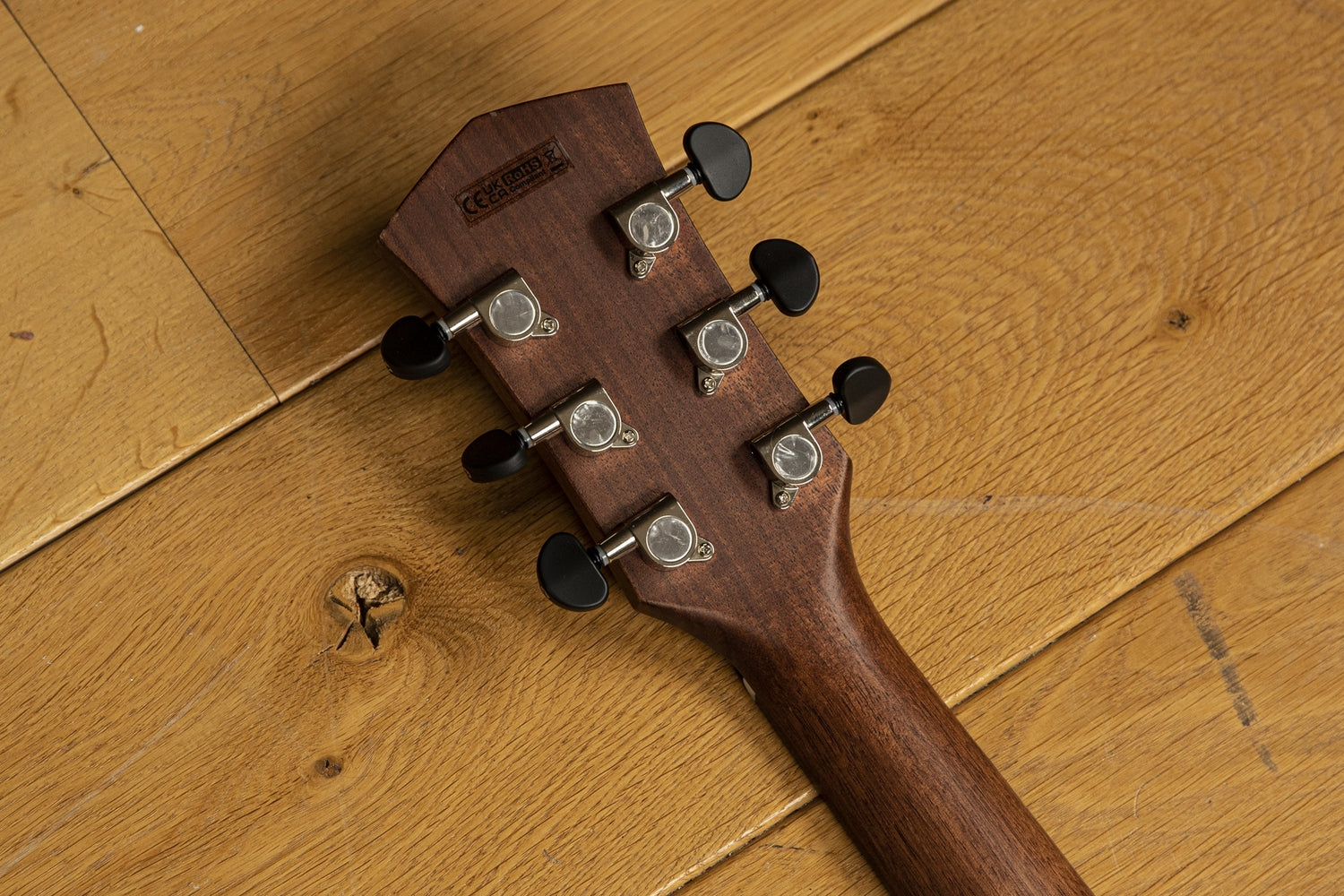 Developed in accordance with recent acoustic guitar market trends, this model features not only mahogany back and sides but mahogany top as well. Although darker sounding than spruce, mahogany produces a warmer tone with a full rich mid-range.