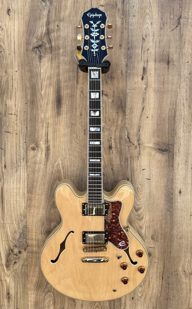 • Neck: Set maple neck with a rosewood fingerboard and classic block inlays. The “tree of life” headstock inlay and bound f-holes show off some of Epiphone’s finest vintage aesthetic touches.