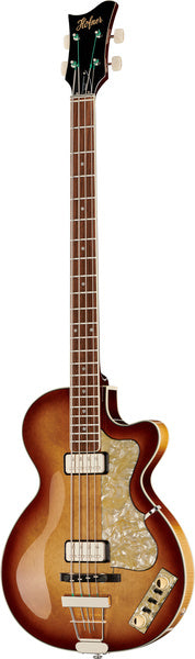 Now the Contemporary version of the Hofner Club Bass is available and offers the famous Hofner bass-sound in an alternative cutaway design. Inspired by the orginal Hofner Club Bass from the 1960s this electric bass guitar offers you the chance to own a piece of history with vintage looks and sound. Light in weight and easy to play with the 30"short scale neck. The centre block improves sustain. Original Hofner ''Staple-Top'' pick-ups. Finish: Sunburst or Black. Wood Top: Spruce - Wood Back: Flame Maple - Wood Sides: Flame Maple - Centreblock: Spruce - Neck: Maple/Beech/Maple - Fingerboard: Rosewood - Scale: 30"/76cm - Nut Width: 42mm - Number Of Frets: 22 - Pickup Neck: Hofner Staple Nickel - Pickup Bridge: Hofner Staple Nickel