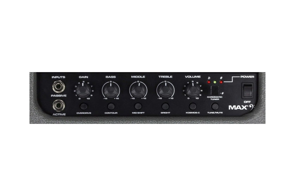 The MAX also features a built-in chromatic tuner with mute, a tuned and ported enclosure, 1/8" headphone output and 1/8" auxiliary input. The amp also includes an XLR direct output with ground lift.