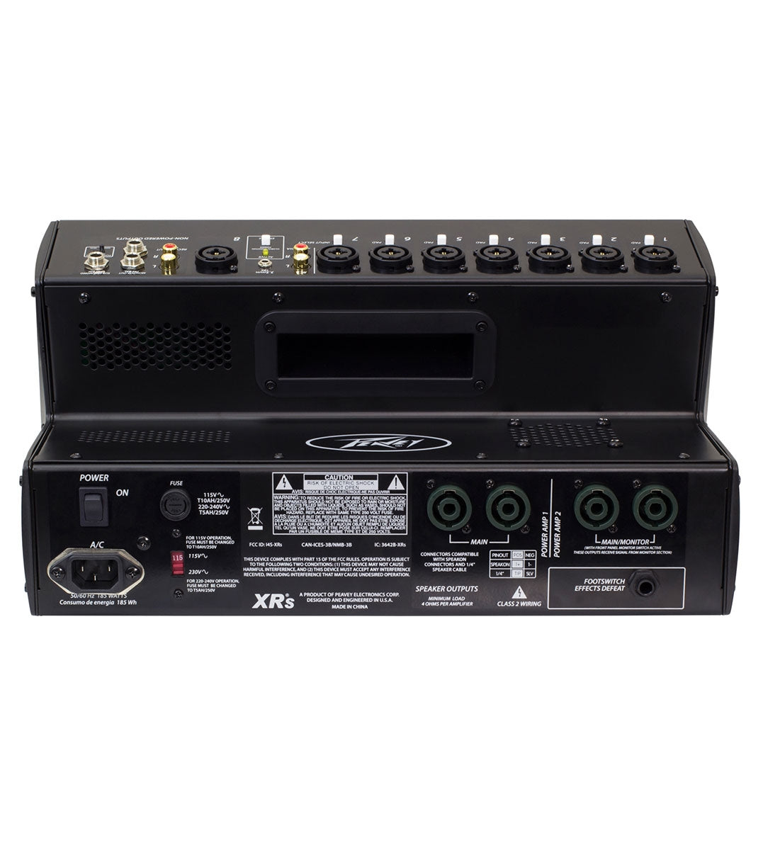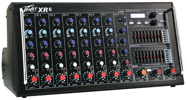 The XR-S comes equipped with on-board digital effects and cutting-edge features that are only available from Peavey, such as MidMorph® and FLS® (Feedback Locating System®). Additionally, the mixer includes Peavey's exclusive KOSMOS® bass enhancement that adds low-end response and increases high-end clarity. The XR-S also features Bluetooth® wireless connectivity for audio playback from any Bluetooth-equipped smart device or USB "jump drive."