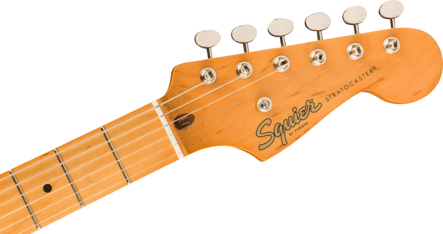 A celebration of the birth of the Strat in the 1950s, the Classic Vibe ‘50s Stratocaster creates incredible tone courtesy of a trio of Fender-Designed alnico single-coil pickups. Player-friendly features include a slim, comfortable “C”-shaped neck profile with an easy-playing 9.5”-radius fingerboard and narrow-tall frets, as well as a vintage-style tremolo system for expressive string bending effects. This throwback Squier model also features 1950s-inspired headstock markings, rich-looking nickel-plated hardware and a slick vintage-tint gloss neck finish for an old-school vibe.
