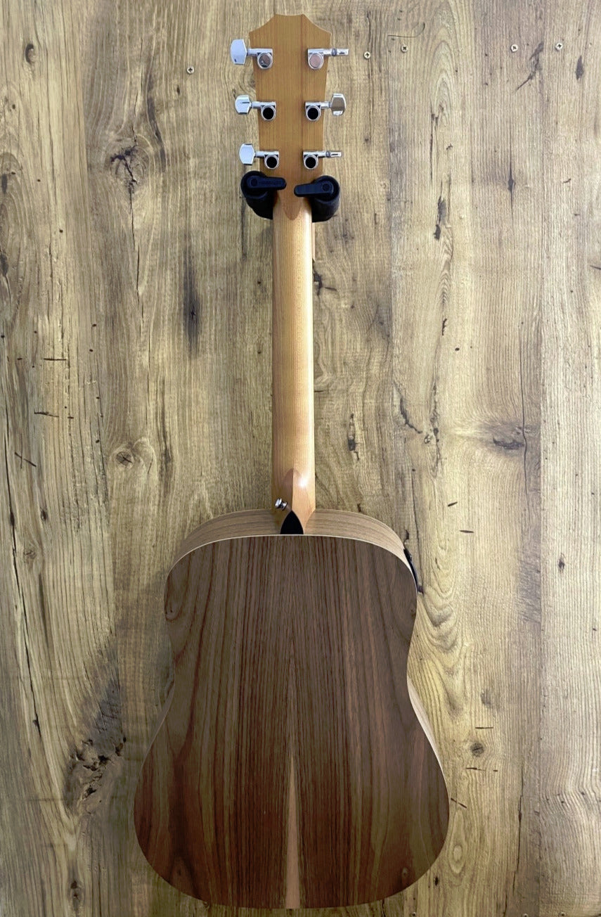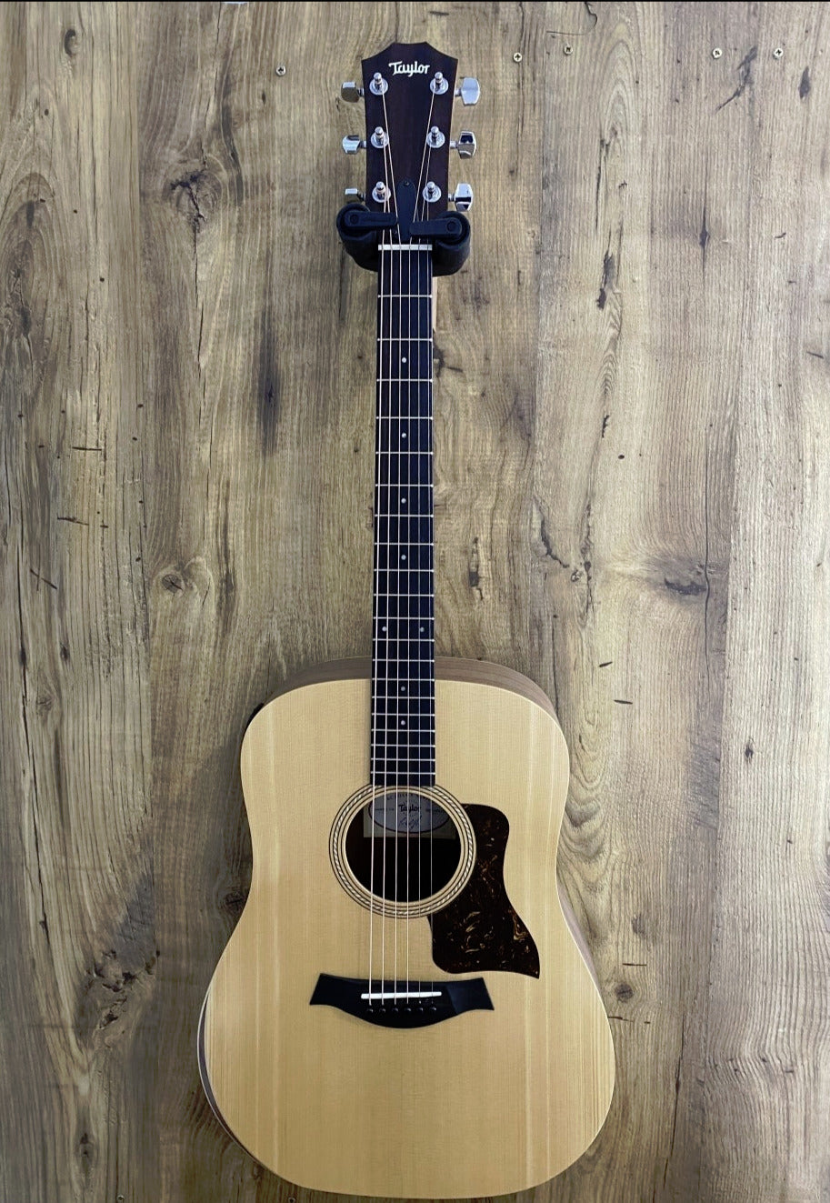 The patented Taylor neck features a slightly shorter 24-7/8-inch scale length, 1-11/16-inch nut width, and light gauge strings, which make fretting and bending strings easier. Tonally the Dreadnoughts body dimensions produce a bold response with a warm low end and punchy treble, making this a great option for strummers and flatpickers. Onboard ES-B electronics include a built-in digital chromatic with an LED display for tuning and low battery indication. Whether you're at the front end of you guitar journey or just looking for a great strumming guitar without breaking the bank, the A10e will serve you well.