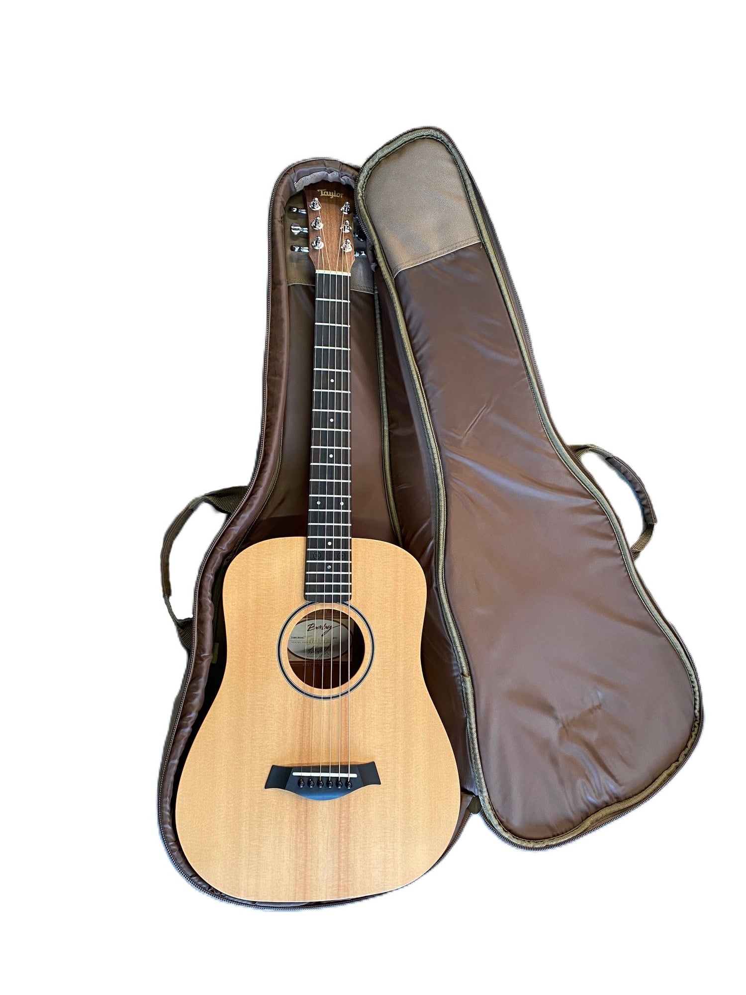 A ¾-scale Dreadnought, the Baby Taylor is designed to yield a ton of volume for its small size. A layered sapele back is pressed into a slight arch, providing strength and helping produce the Baby's full, rich tone. It's also remarkably versatile for special applications, whether played in alternate tunings or high-strung; with a capo or a slide. And it's the perfect travel companion or starter guitar for young kids.
