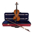 Hand carved from selected tonewoods. Solid spruce top, maple back and sides with a maple neck and with the advantage of ebony pegs and fingerboard. It comes with a good student wood bow with ebony frog and rope core strings. The outfit comes complete with a lightweight case with accessory pockets and carrying straps, and fitted with an alloy tailpiece and integral adjusters.