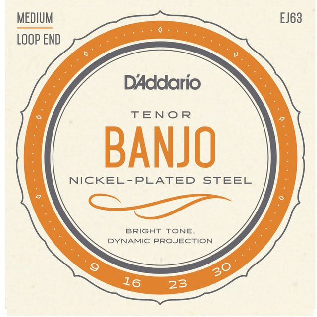 EJ63, D'Addario's universally appealing tenor banjo set, is optimally gauged for C-G-D-A tuning on 4-string banjo. Loopend construction for universal fit.
