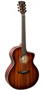 Faith Blood Moon series are an exciting departure from traditional woods that are usually used. Featuring highly figured 'AAA' grade Solid Indonesian Trembesi on top, back and sides with a gloss finish, this guitar gives a harmonically powerful tone as striking to hear as to observe. Faith Blood Moon guitars are bound with Flamed Maple and feature Macassan Ebony fingerboards, headplates, heelplates, bridges and bridge pins. This Electro model feature the Fishman INK3 preamp system. All Blood Moon series Faith Guitars are complete with a Faith Hardcase.