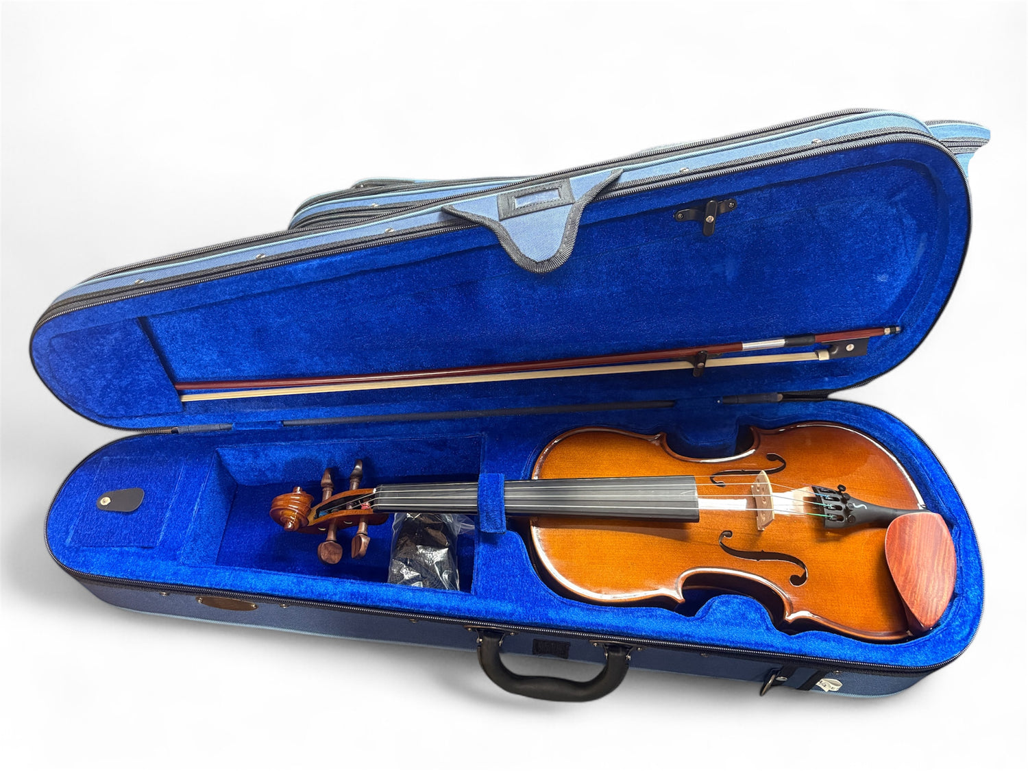 All the Stentor 1 violins are personally checked and set up by myself before they go out. Any minor adjustments that are needed are done. I check the pegs are fitting properly and then put the strings on. The bridge is stood up in the correct position and the violin is then tuned. Rosin is included and applied to the bow. This violin will arrive to you ready to play.