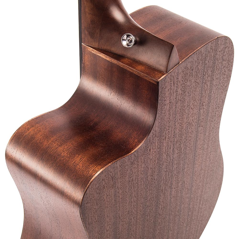 Available in dreadnought, concert and parlour body sizes, all models share that classic ‘bluesman on a budget’ theme, looking authentically cool in a satin matt, Whisky Sour finish highlighting the natural grain pattern of the all-mahogany construction and subtle soundhole rosette.