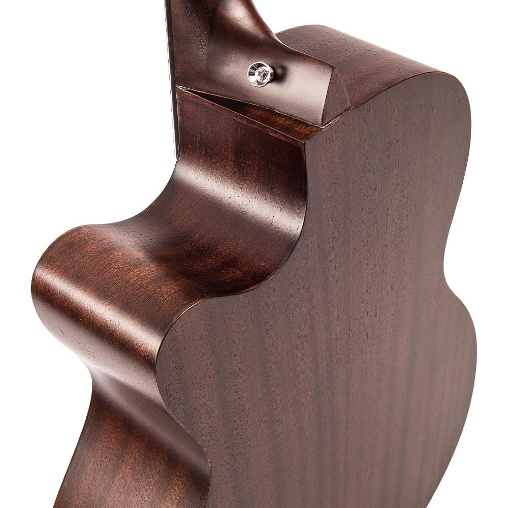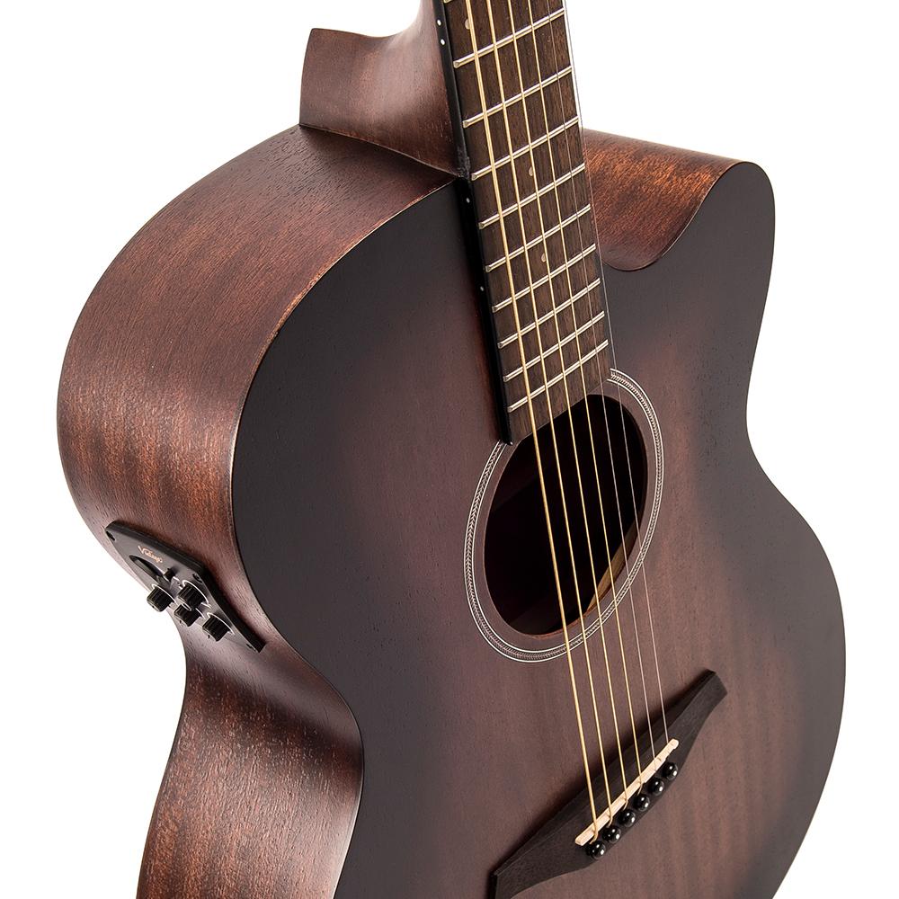 Available in dreadnought, concert and parlour body sizes, all models share that classic ‘bluesman on a budget’ theme, looking authentically cool in a satin matt, Whisky Sour finish highlighting the natural grain pattern of the all-mahogany construction and subtle soundhole rosette.