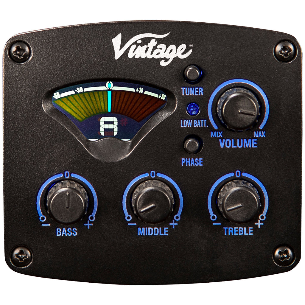 With individual Volume, Bass, Middle and Treble EQ controls, the Vintage preamp captures and delivers all frequencies uncoloured, to external sources such as mixing desks, amps, monitors or PA systems. There’s also a very handy built-in tuner and battery check indicator.