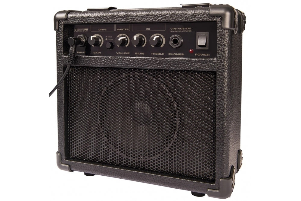 The V69 guitar pack also includes a Kinsman 10 watt combo amplifier with Gain Control, push button Drive/Clean, 3-band EQ and for silent practicing a handy headphone socket.