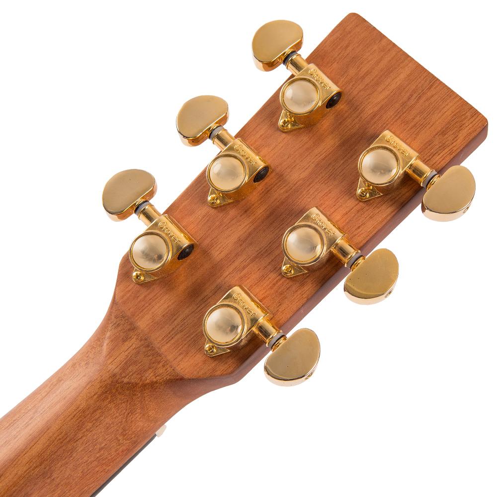 Hardware also includes a Fishman Presys Blend Preamp System, gold plated Grover 102G Rotomatic smooth-geared machine heads, gold strap buttons and ¼ inch jack/XLR outputs.